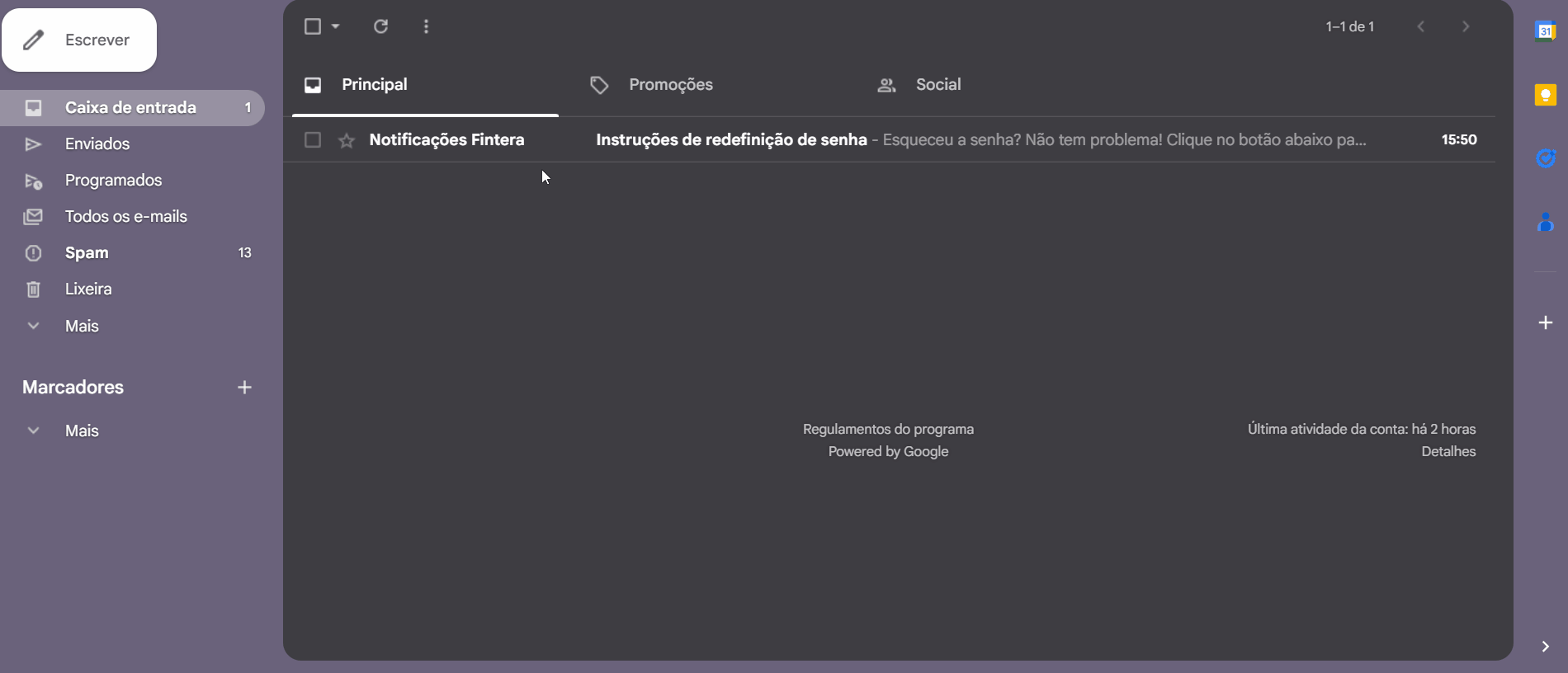 Abra a mensagem enviada por notificacoes@fintera.com.br e clique no botão rosa Trocar minha senha.