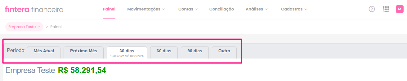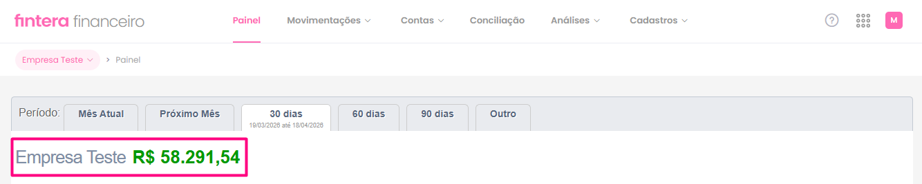 ⚠️ Importante: O Painel do Financeiro sempre apresenta em seus campos Contas a Pagar e Receber os lançamentos aptos a serem recebidos ou pagos no filtro utilizado.