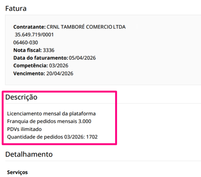 Utilize este espaço para detalhar o que está sendo faturado. O texto inserido aqui será exibido diretamente na fatura emitida: