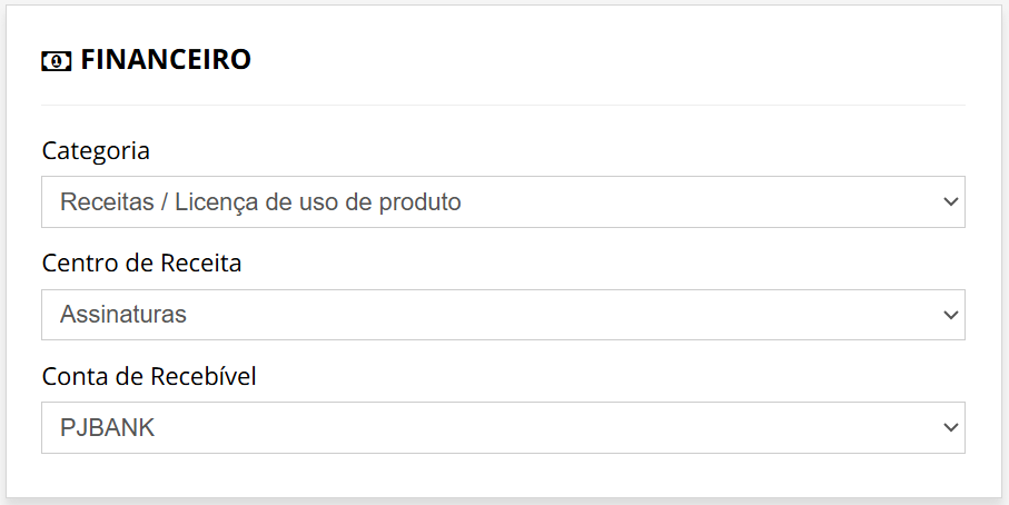 Esta seção é apresentado para contas integradas ao módulo Financeiro. Ele é o elo entre o seu faturamento e o seu contas a receber, garantindo que cada cobrança gerada já nasça com a classificação correta.