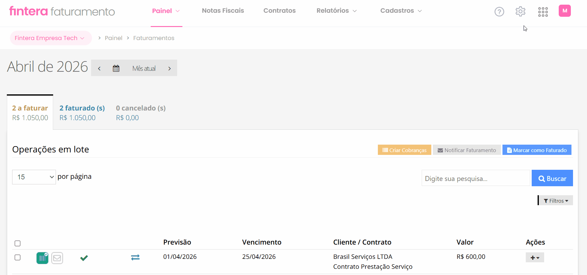 Conheça todas as ações possíveis em seu Painel de Faturamentos acessando nosso artigo: Conhecendo o Painel de Faturamentos.