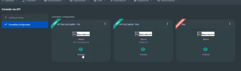 - Nome da Conexão: nome dado a conexão para identificação do que realiza (exemplo: API Pagamento - Banco - Nome Empresa - Forma Pagamento)