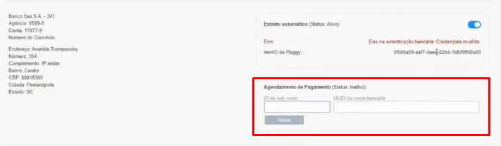 No caso de ativação do agendamento de pagamentos via PIX (API) precisamos solicitar e validar alguns dados: